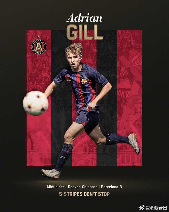 【官方】亚特兰大联签下20岁的巴萨中场阿德里安-吉尔,据悉交易为免签,但巴萨保留一定的二次转会分成。